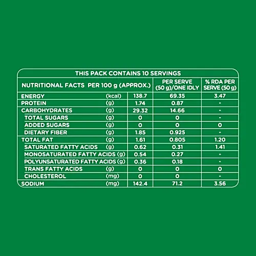 Typically, an idli/dosa batter involves a three-step recipe which includes soaking the rice, grinding and fermenting it. But with this readymade batter, you can make crispy dosa and fluffy soft idlis in no time at all. This Batter serves to cook 17 to 20 idlis and 12 to 14 dosas. Idlis contain no cholesterol, no fat, and no saturated fat. These small healthy South Indian food treats are good for you and, as a bonus, convenient for those on the go. To make your diet a bit healthier, swap a doughnut or muffin for healthy South Indian food idli/dosa.